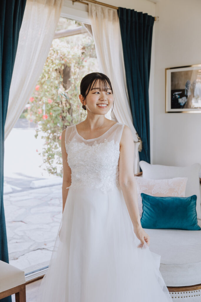 The bride prepared in her ocean cottage suite, surrounded by Southern California’s beauty and the promise of an unforgettable wedding.