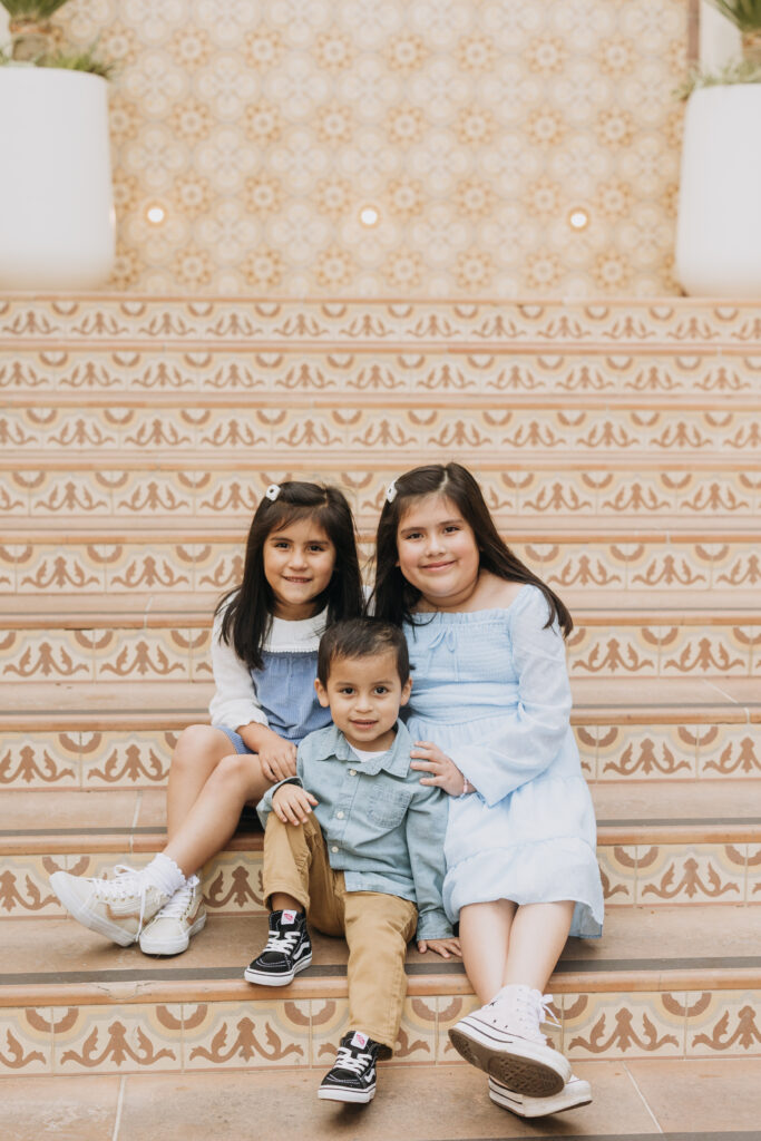 Their session began on the Spanish-style steps of Terranea Resort, where the three little ones filled this Southern California setting with laughter and energy.
