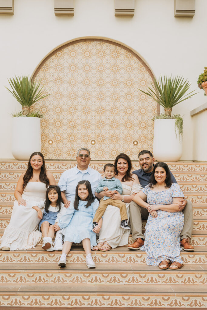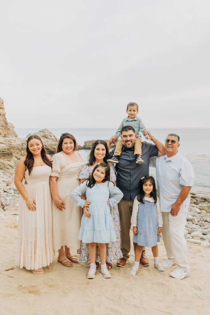 A beautiful family of eight gathers for a Southern California family session at Terranea Resort, celebrating love across three generations.