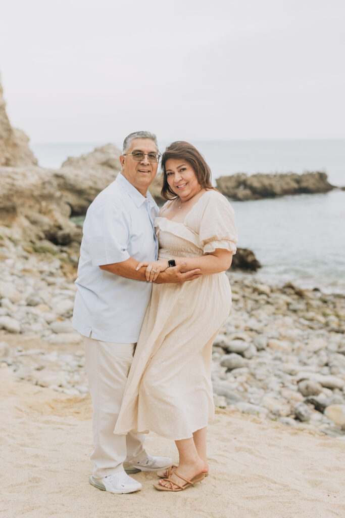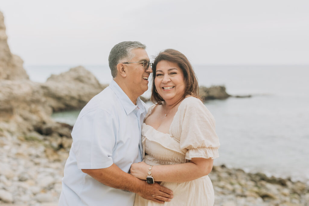 Set against the Palos Verdes coastline, the grandparents held one another close, their portraits reflecting decades of love and family legacy.