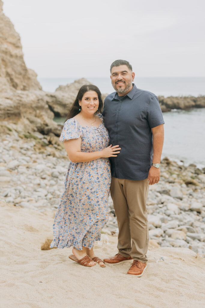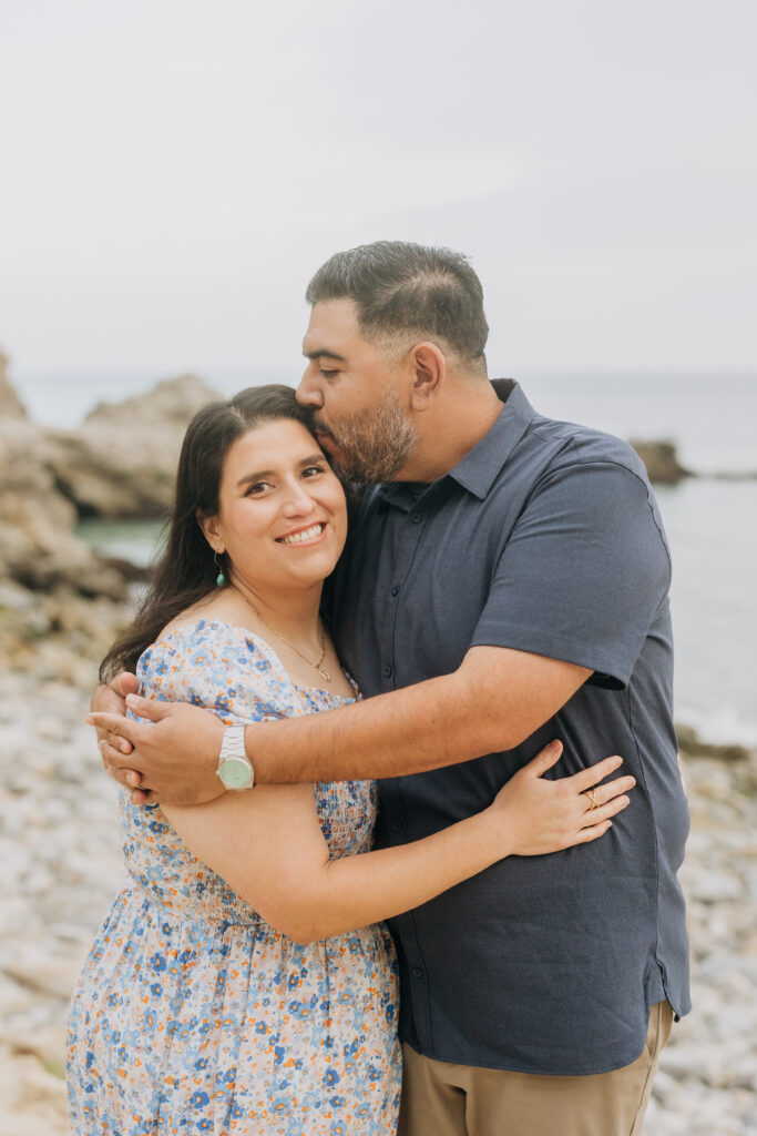 Overlooking the Pacific, the parents shared a quiet kiss during their Terranea Resort seaside portrait.