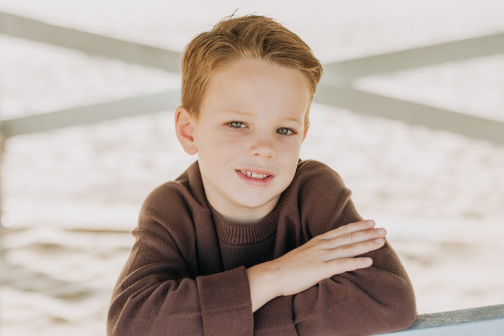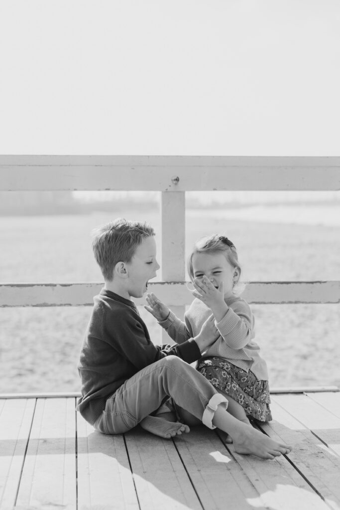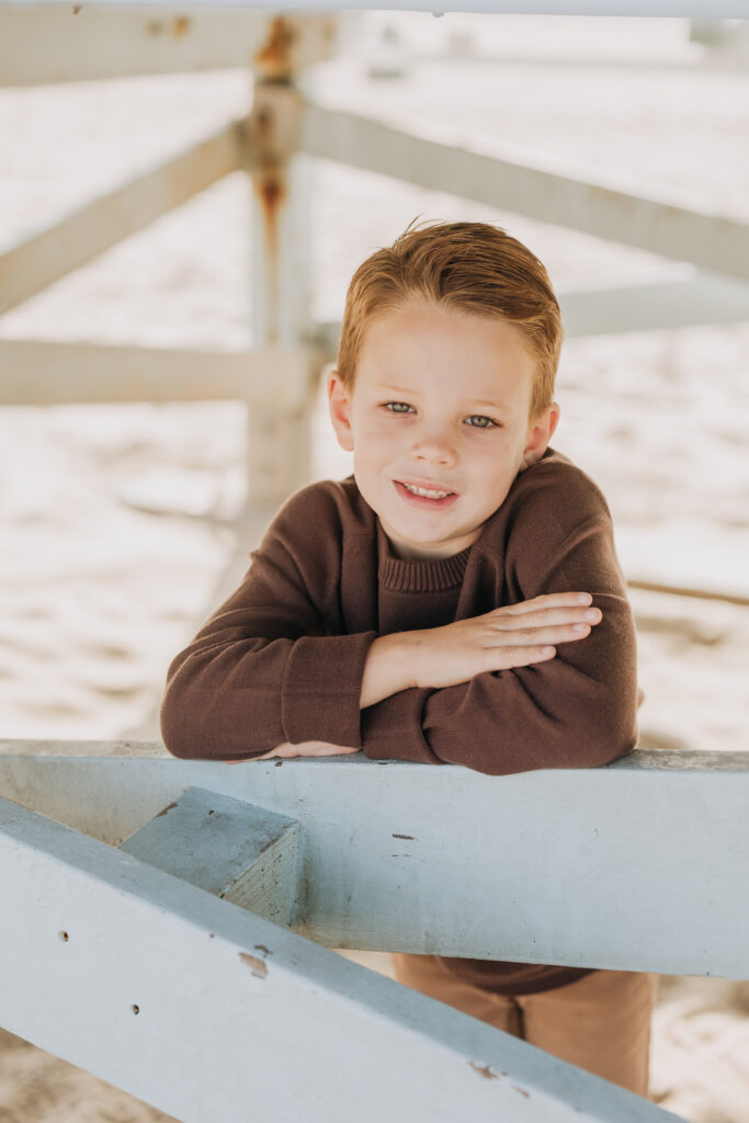 The boy laughed and played on the planks of the lifeguard tower, his energy filling these elevated beach family portraits.