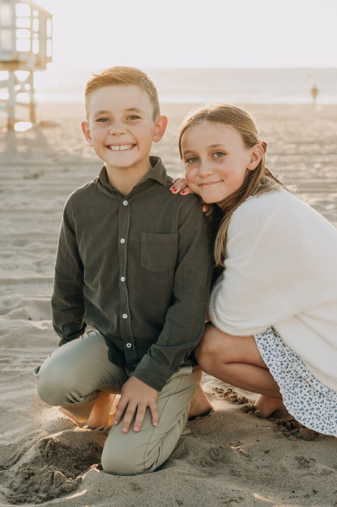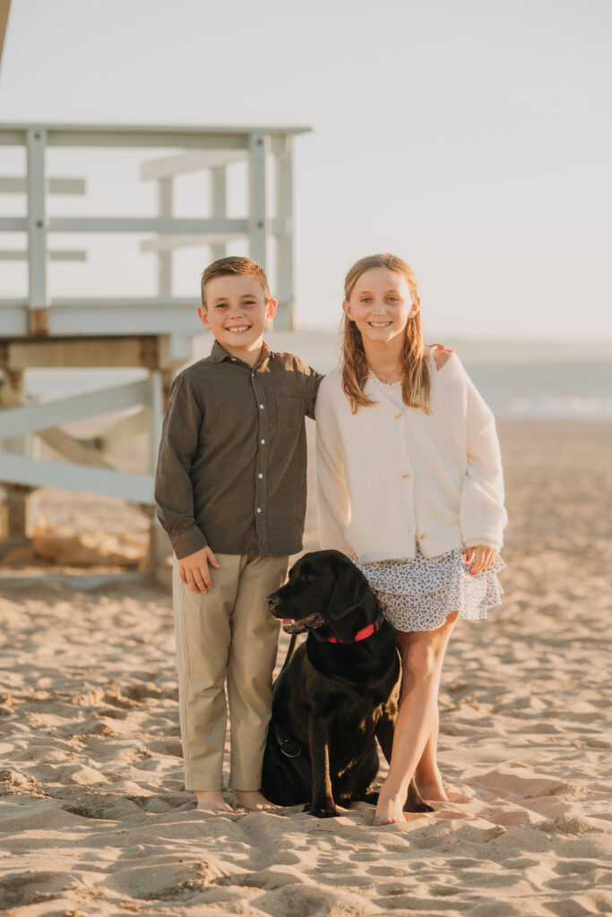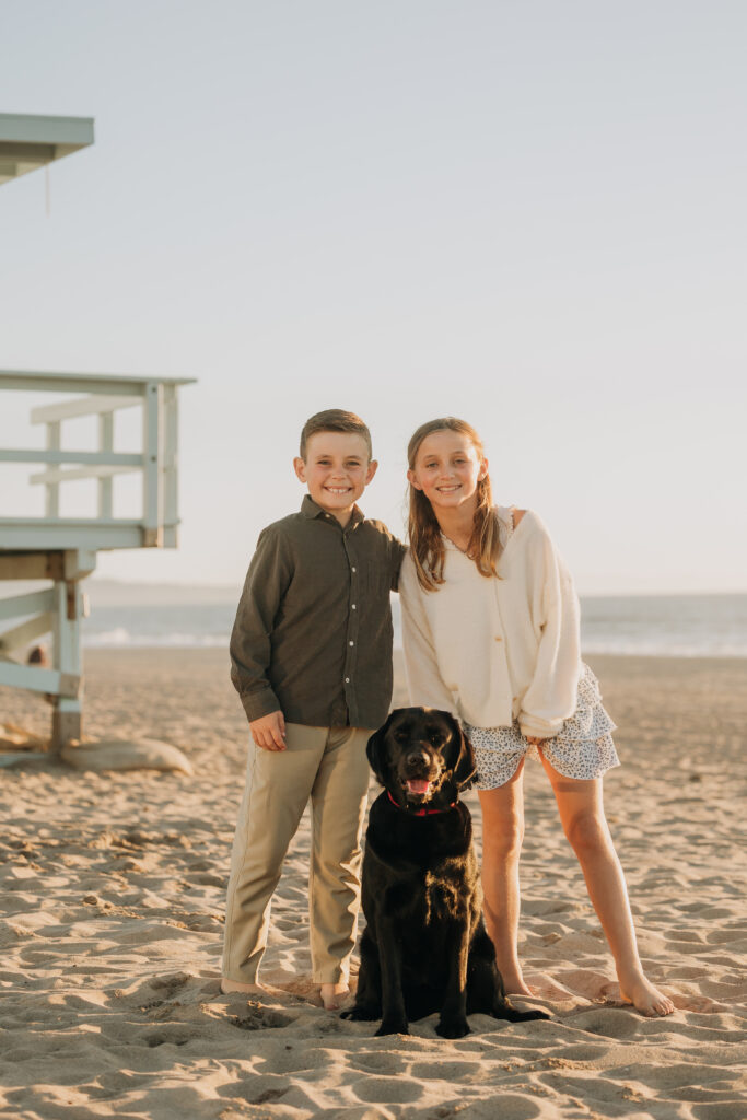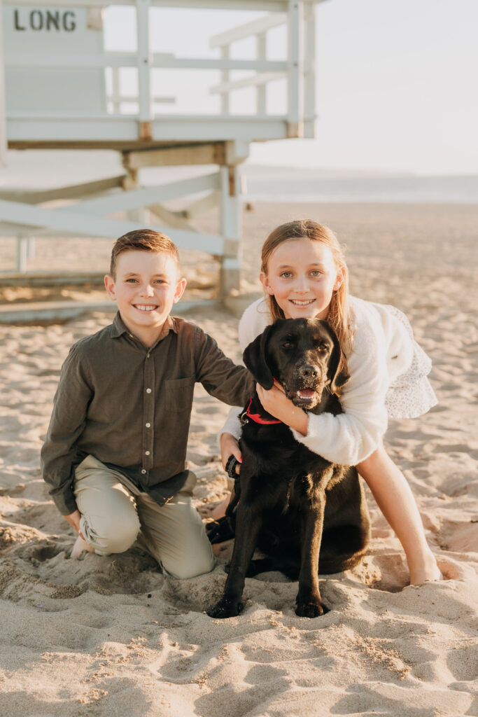 In front of the iconic lifeguard tower, the siblings hugged each other and their dog, creating candid moments in a place loved by the Manhattan Beach family photographer.