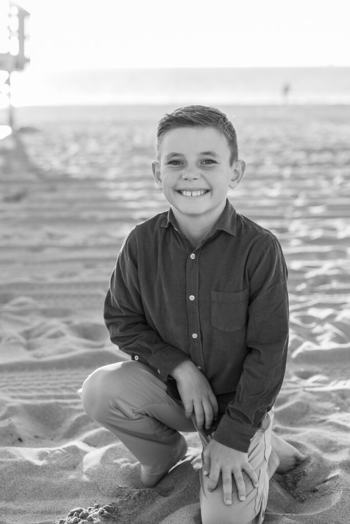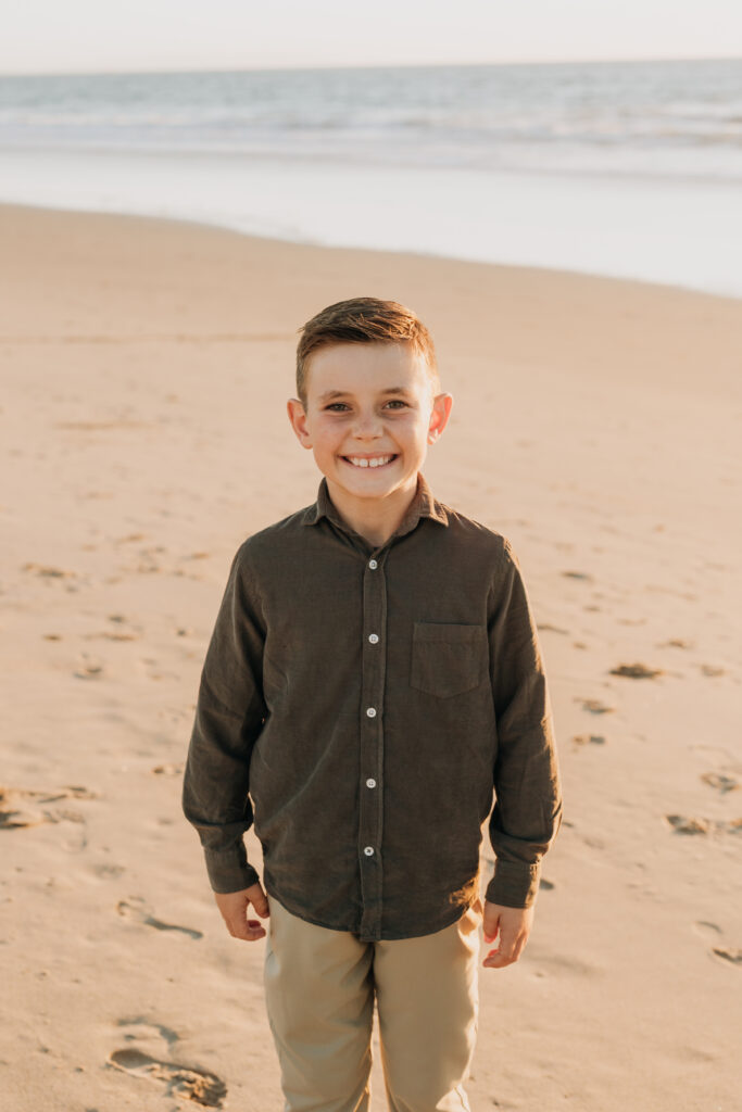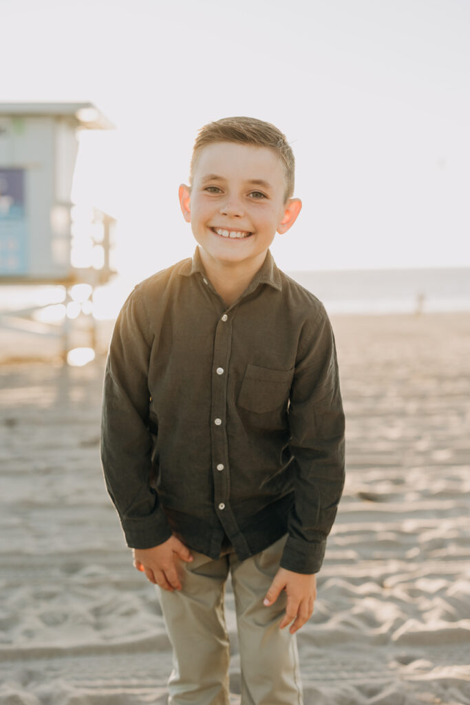 The son’s bright smile shined during his golden hour portrait, a joyful highlight of this Manhattan Beach family photography session.
