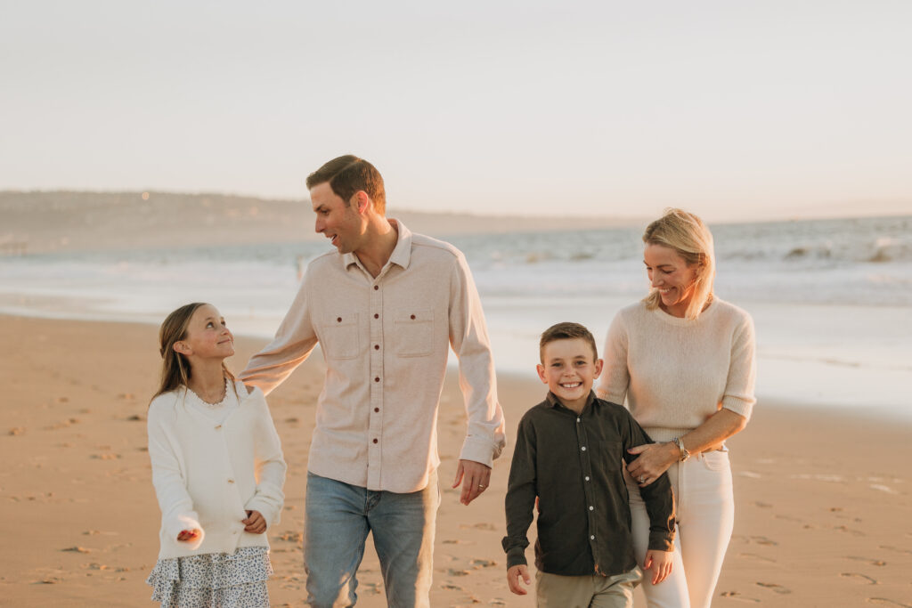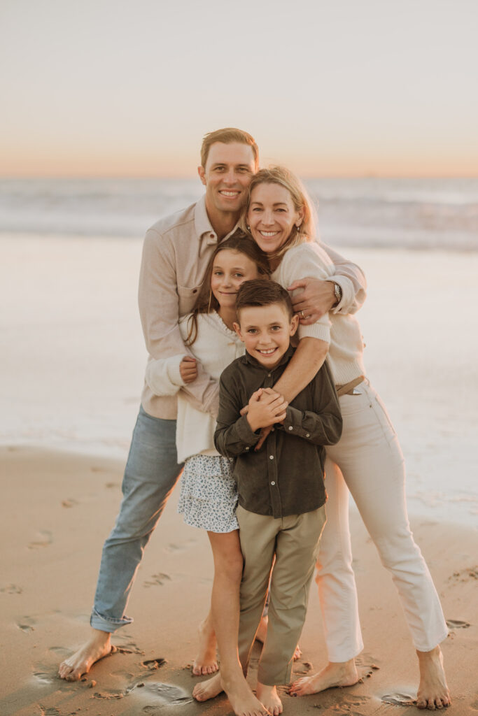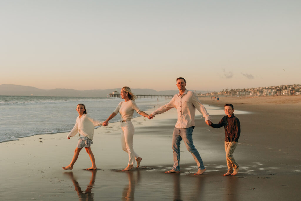 Hand in hand, the family held each other close as the session concluded, perfectly capturing the warmth of a Manhattan Beach family photographer’s golden hour shoot.