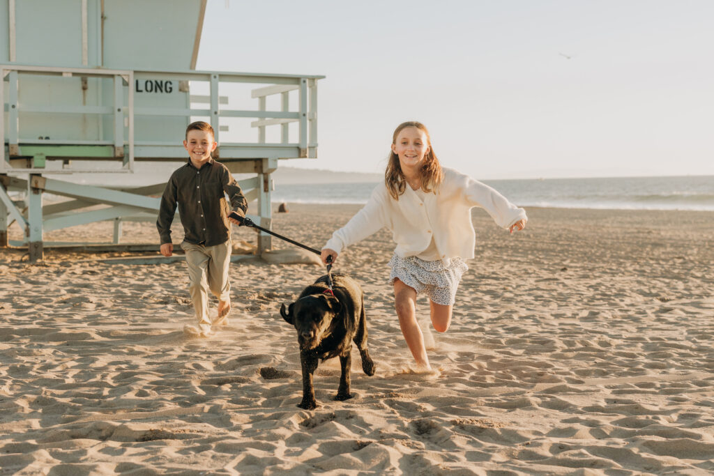 Playtime quickly followed as the siblings and their dog ran and laughed together, embracing the carefree energy of a coastal family session.