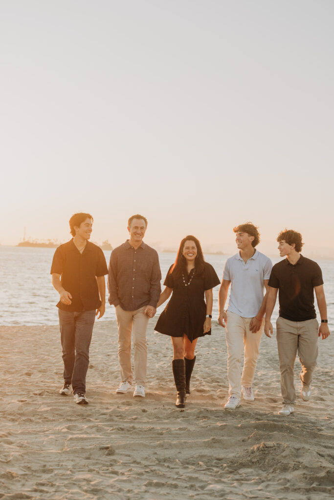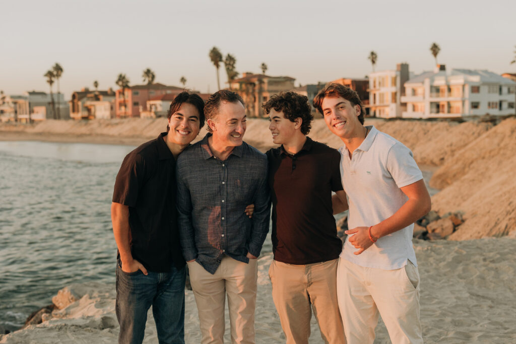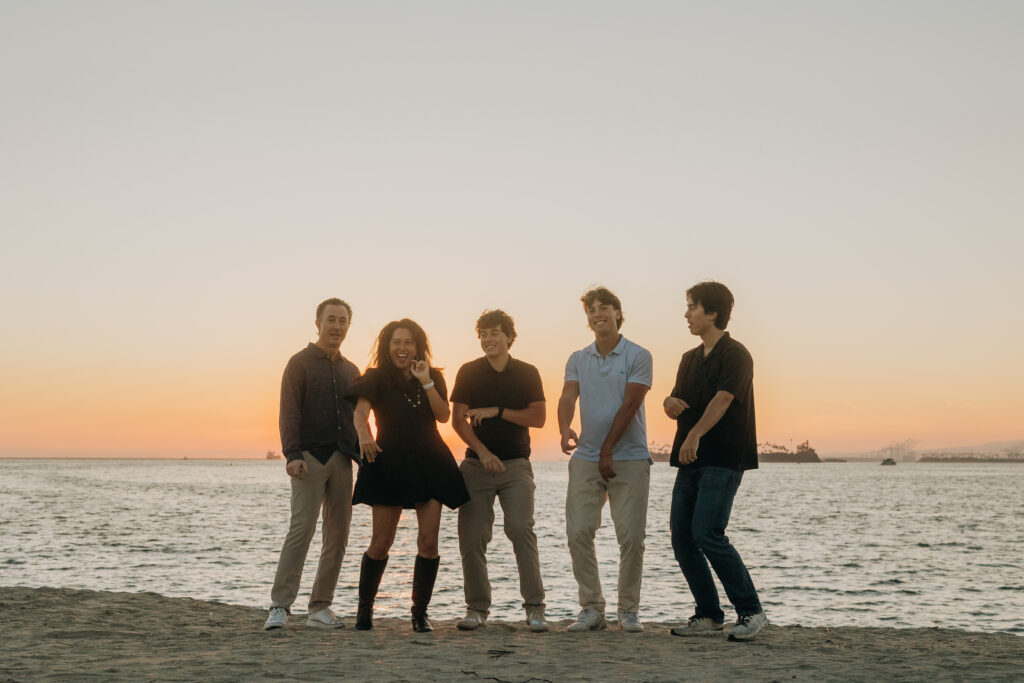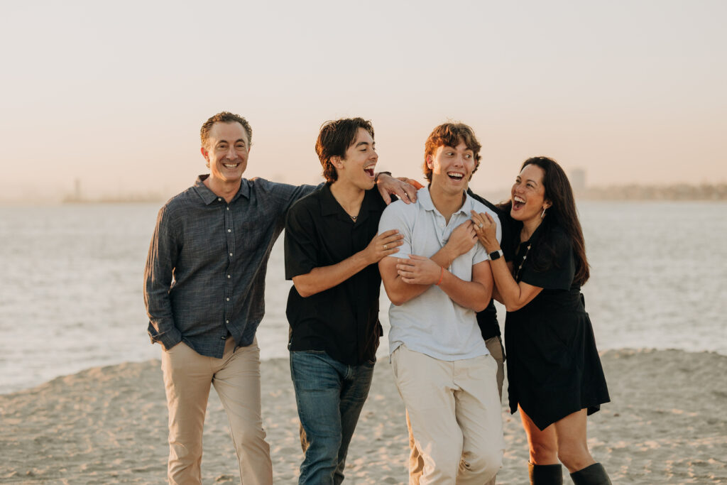 The parents stepped in, laughing and joking alongside their sons, a candid moment in this coastal Southern California family shoot.