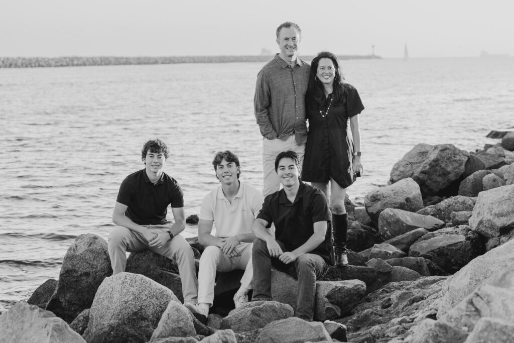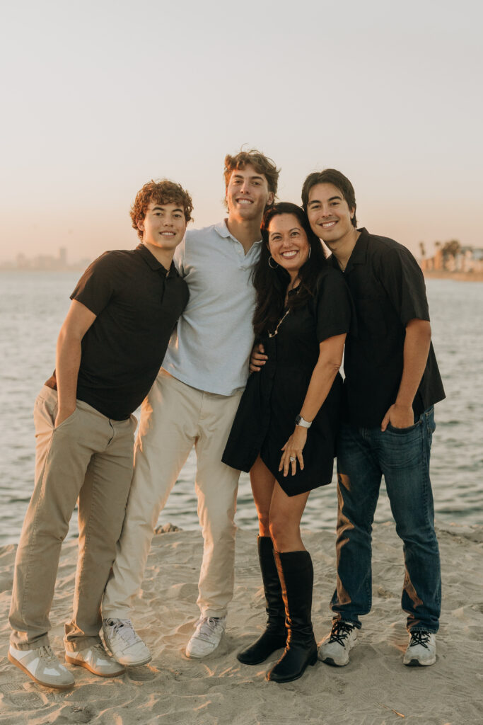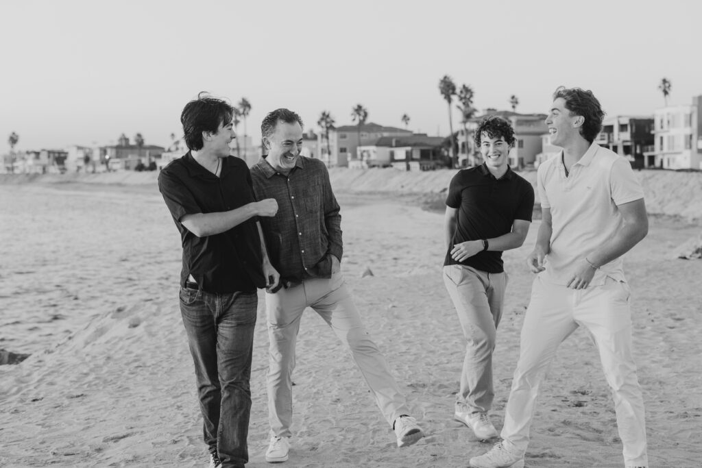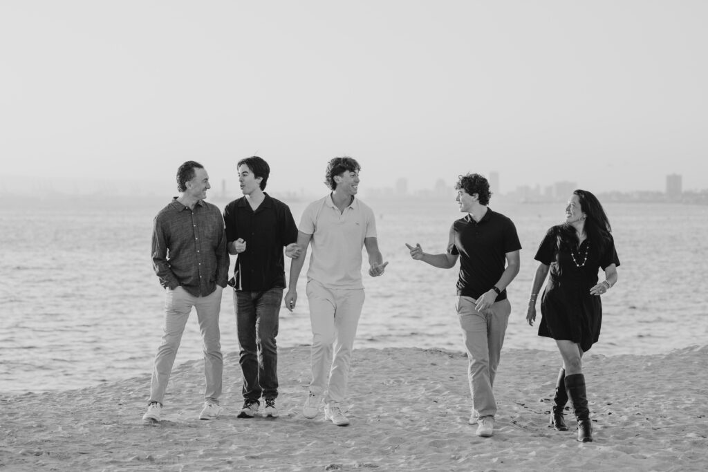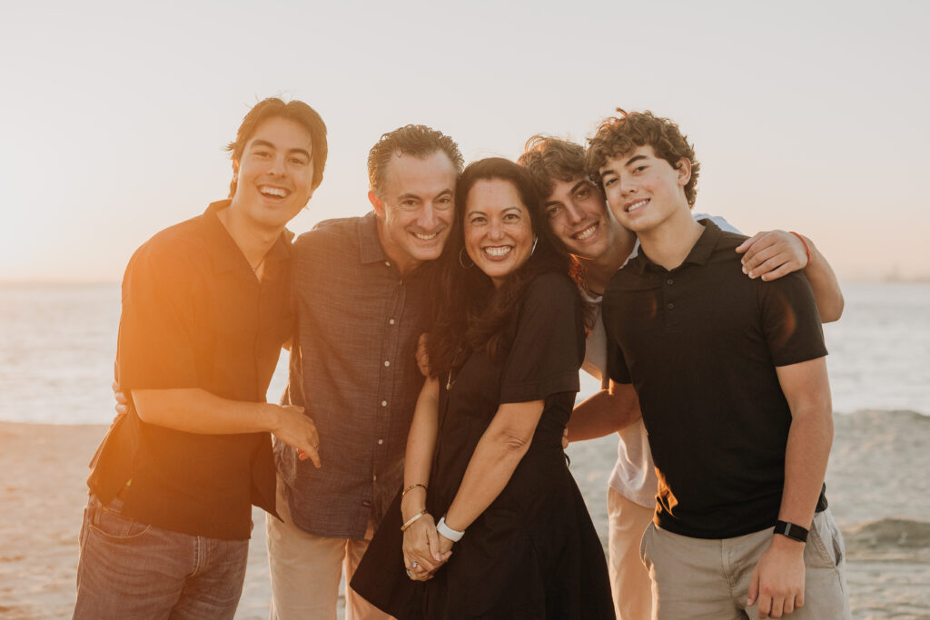 The parents stepped in, laughing and joking alongside their sons, a candid moment in this coastal Southern California family shoot.