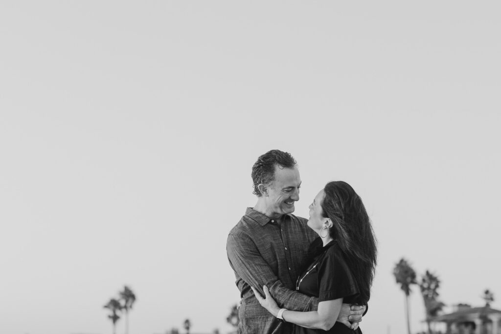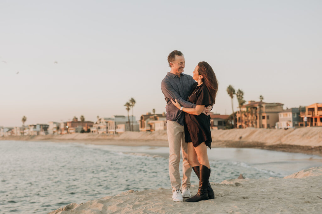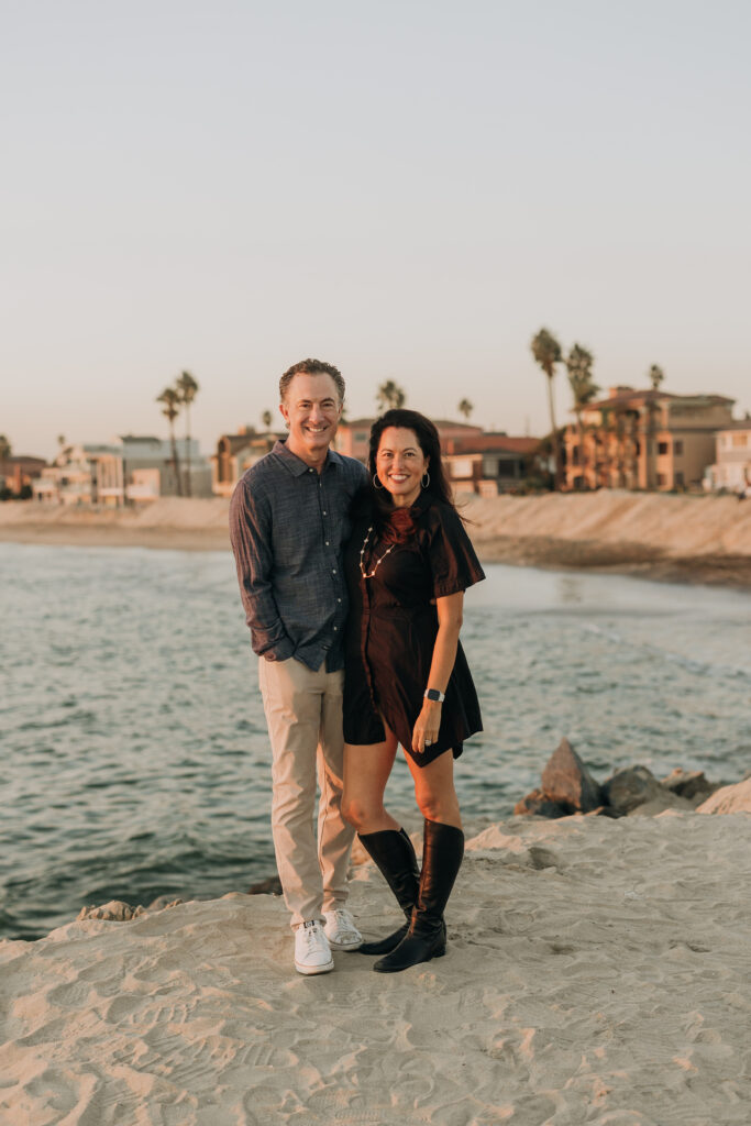 As the sky turned gold, the parents embraced and kissed, a timeless moment within this Southern California beach family session.