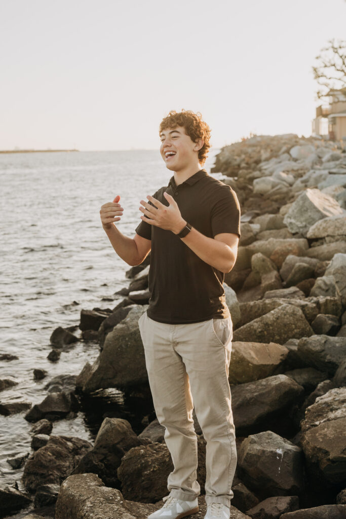 A solo portrait of the youngest son showcased his personality, framed by ocean light and the easy feel of a coastal family session.