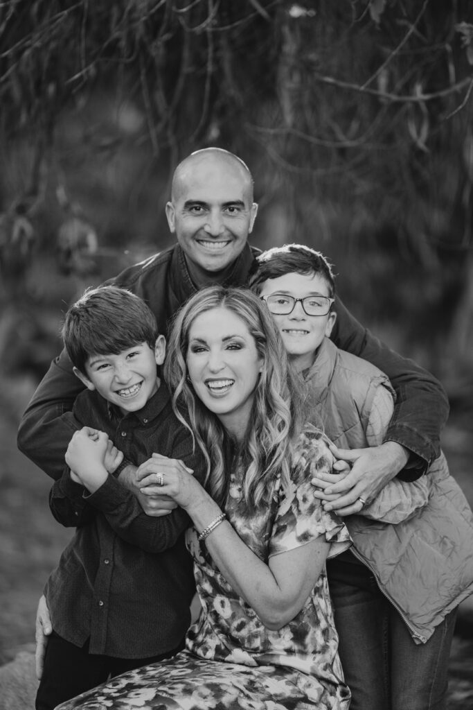 This family of four pulled together for a big hug. If you’re looking for family of four photo inspo, this is one of the best poses!