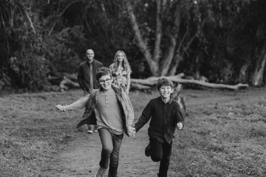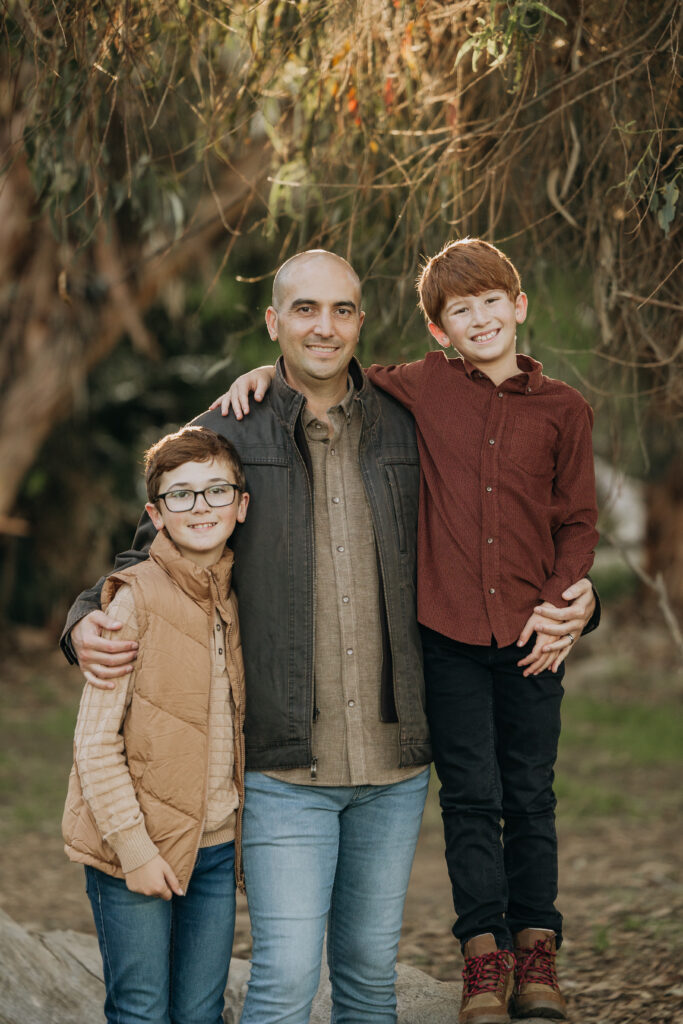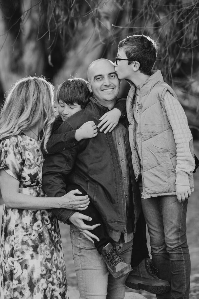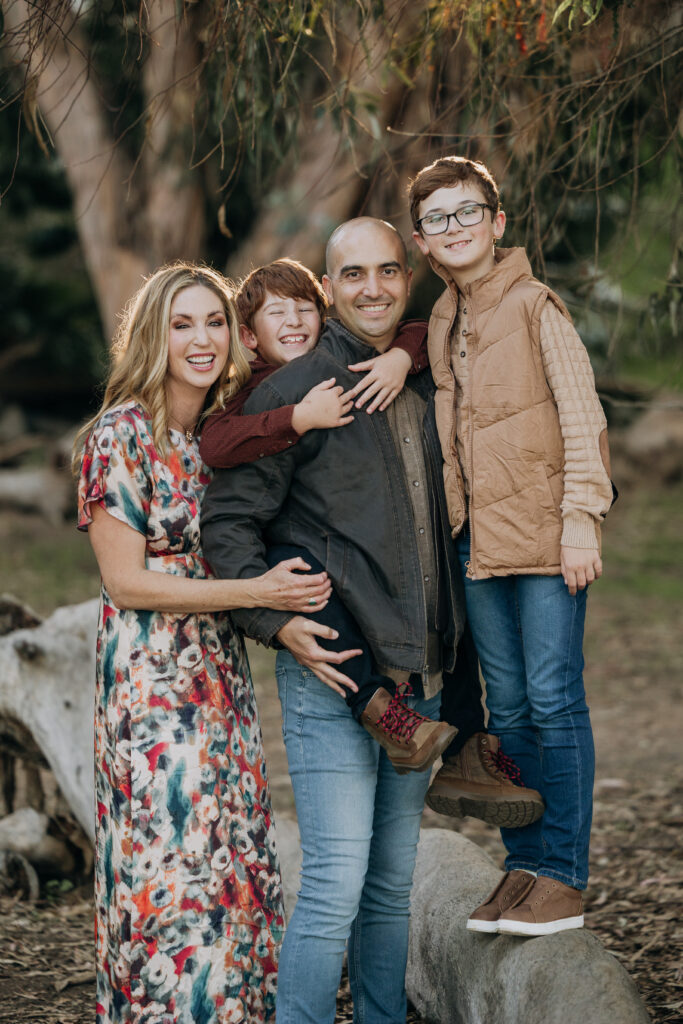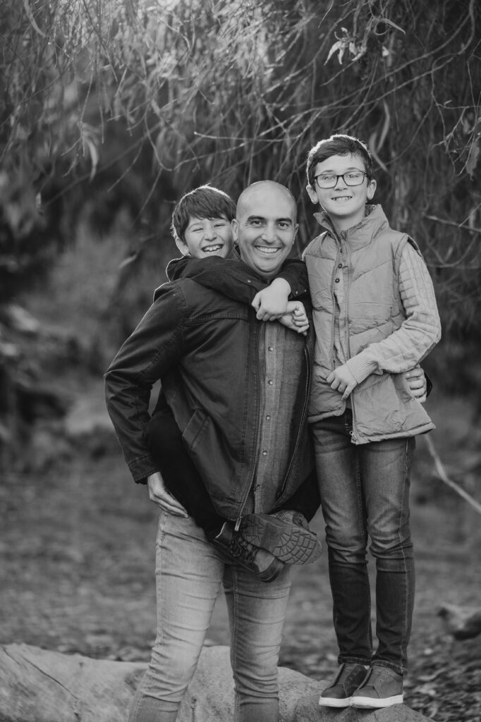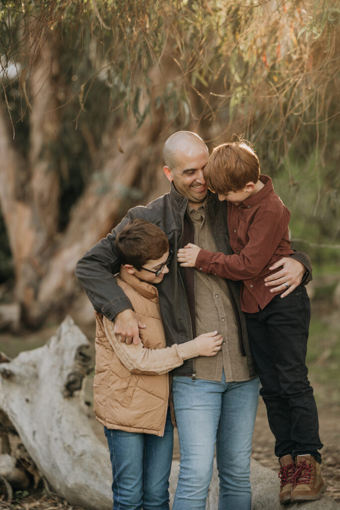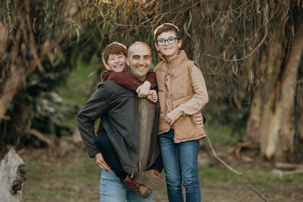 The boys climbing on dad’s back make for great father-son Southern California candid photo moments.