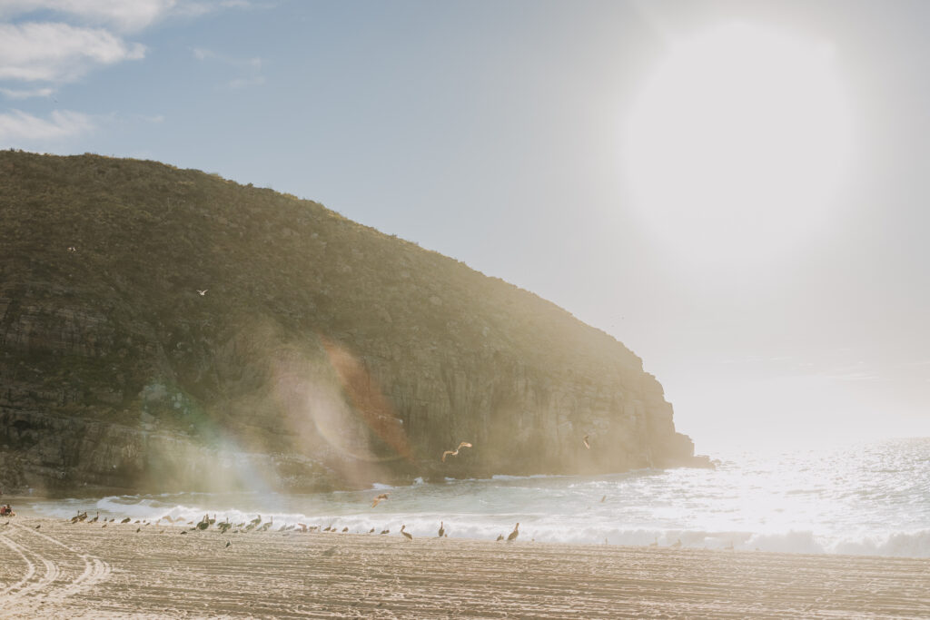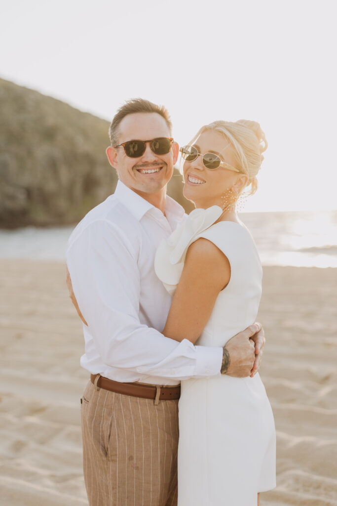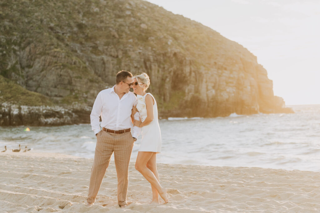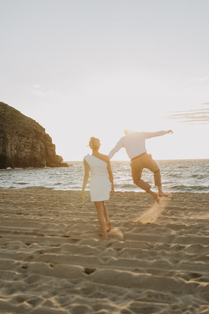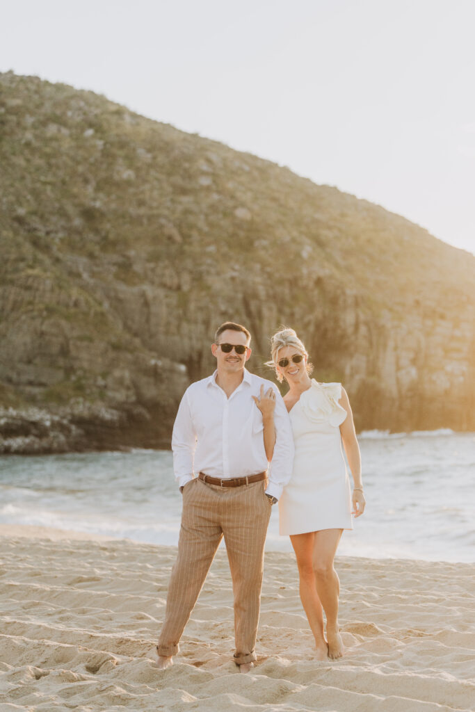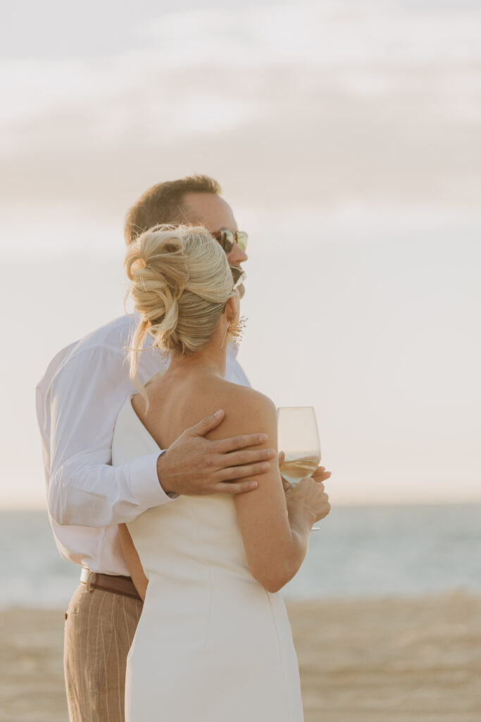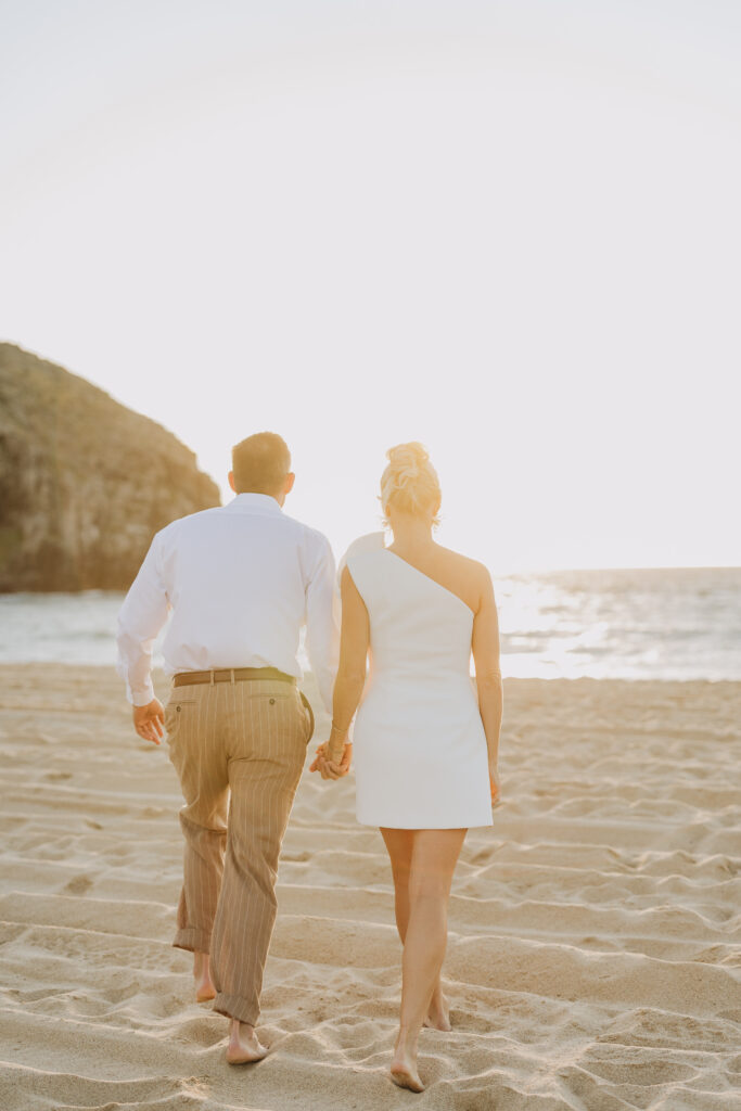 Carissa and Dan on the beach at Punta Lobos before the rehearsal dinner  share a sweet candid moment during their Todos Santos destination wedding.