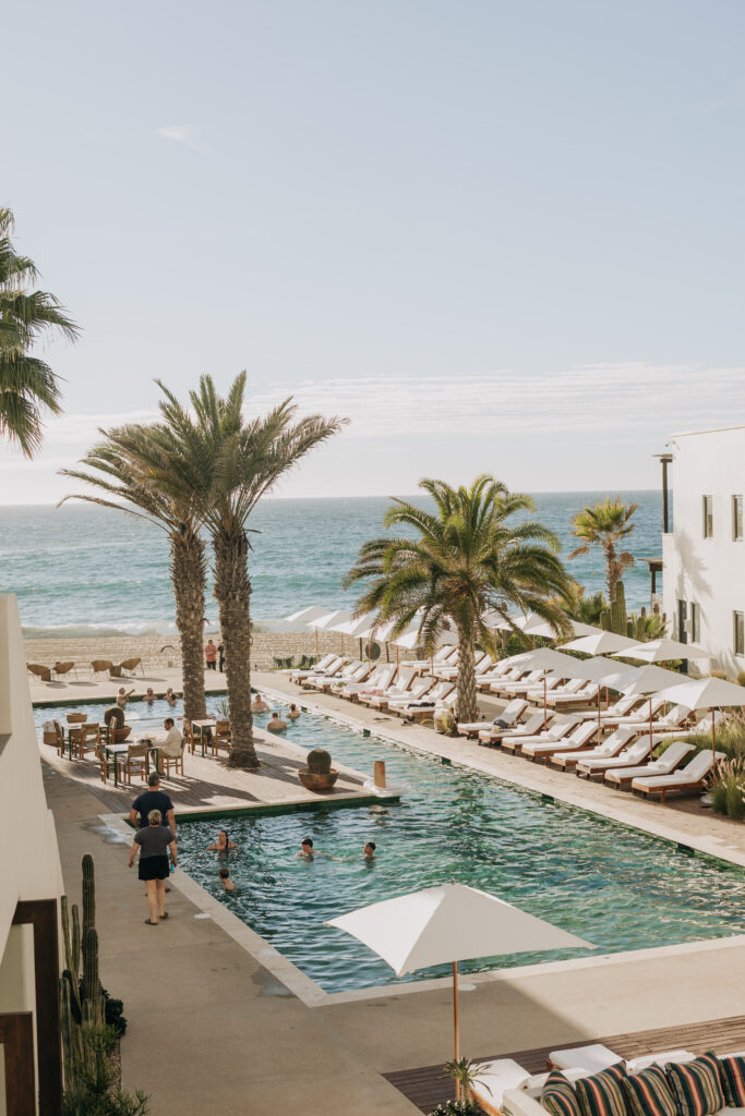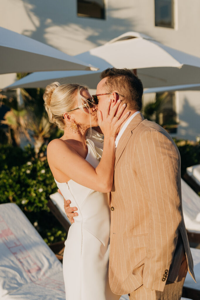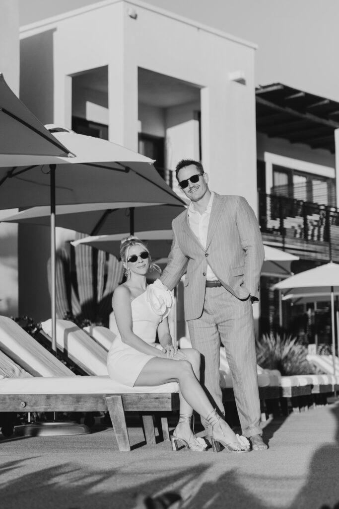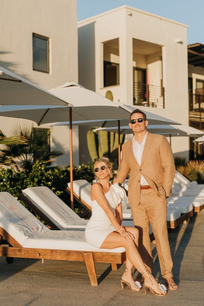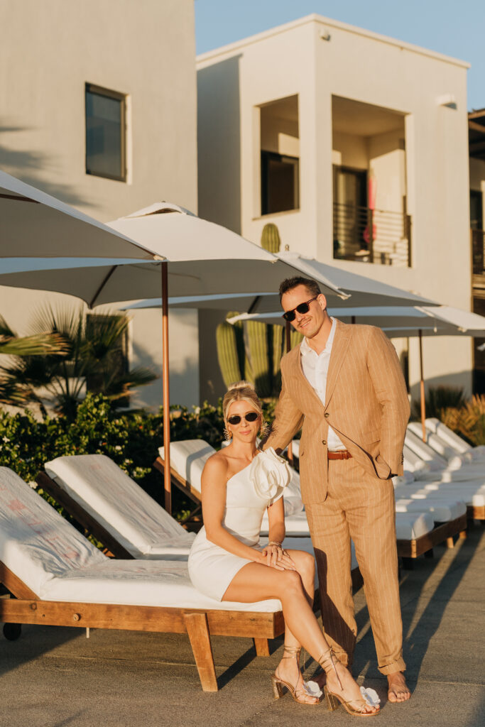 An impromptu photo shoot on the pool deck, lounging on the chairs at Hotel San Cristóbal before the dinner. Stay tuned for Part 2 of this Todos Santos, Mexico wedding.